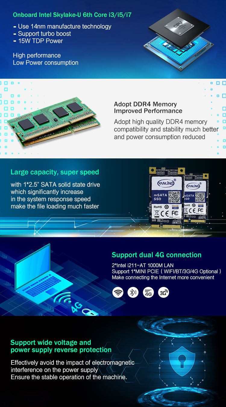 ◇ Ar fwrdd Intel 6ed neu 7fed Craidd Cenhedlaeth i3 neu i5 neu i7;
